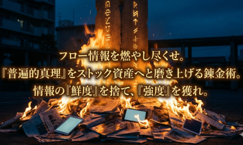 「最新のAIニュースを追いかけなければ」 「今、何がバズっているのかを知っておかなければ」 もしあなたが、そんな情報の賞味期限に怯えているなら、あなたの知性はすでに消費財へと成り下がっています。 24時間で価値がゼロにな…