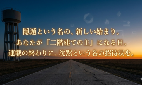30日間にわたる観測者の作法は、ここで幕を閉じます。 これまで語ってきたのは、いわば公道に面した看板に過ぎません。 SNS、広告、他人の評価、終わりのない売上目標。 あなたがもし、それらシステムの監視から逃れ、自分だけの…